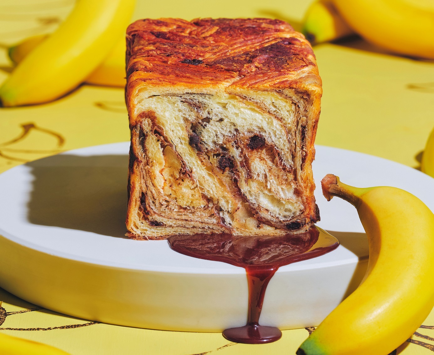 相性抜群のバナナとチョコレートを織り込んだ、とても風味が良いマーブルデニッシュ「チョコバナナ」は、幸せ心地満載の大変贅沢な一品です。口に入れた瞬間に、まずはバナナの香りが存分に感じられ、次にフルーティーな甘さとカカオのビター感がたまらない安定の美味しさ。特に、女性やお子様に大人気です。10月新発売、東京限定、大好評販売中です。