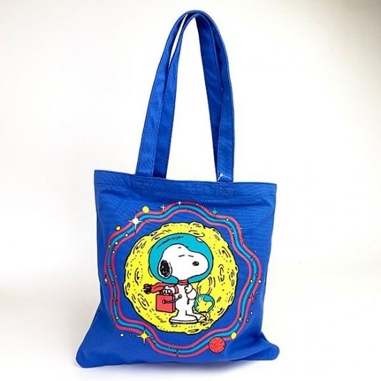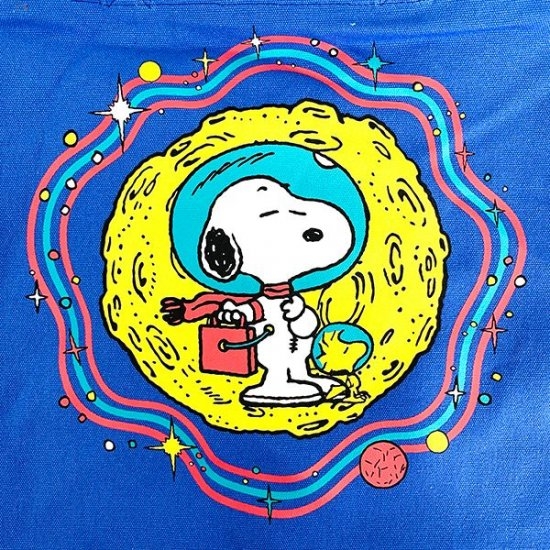 こちらは、スペースデザインのトートバッグです。このところ人気のデザインで、こちらもインパクトのあるデザインとカラーです。