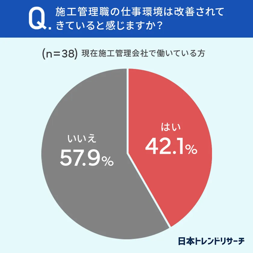42.1%と、およそ半数の方が「施工管理職の仕事環境は改善されてきている」と感じているようです。