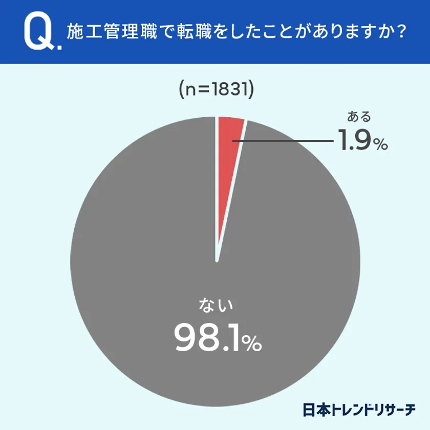 1.9%の方が「施工管理職で転職の経験がある」と回答しています。
