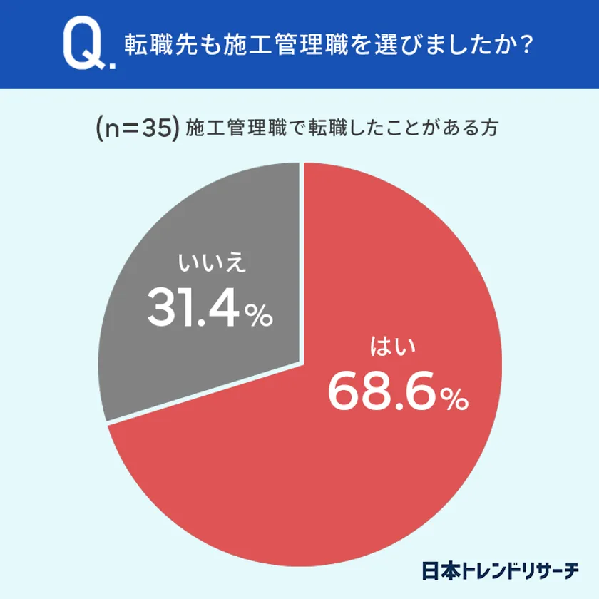 68.6%と、半数以上の方が転職先も施工管理職を選んだそうです。