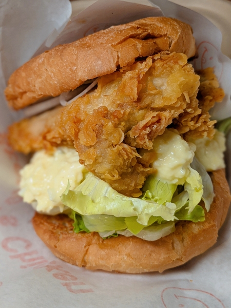 スティーブ・リー氏はチキンだけでなく、完璧な組み合わせにもこだわりを持っています。毎朝、スティーブ氏は新鮮なハンバーガーバンズを焼いており、ふわふわの大きなバンズに、看板メニューである特大のチキンパテがぎっしりと入っています。