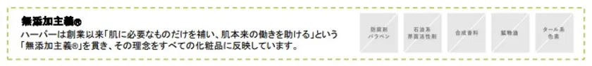 ハーバーは創業以来「肌に必要なものだけを補い、肌本来の働きを助ける」という「無添加主義(R)」を貫き、その理念をすべての化粧品に反映しています。