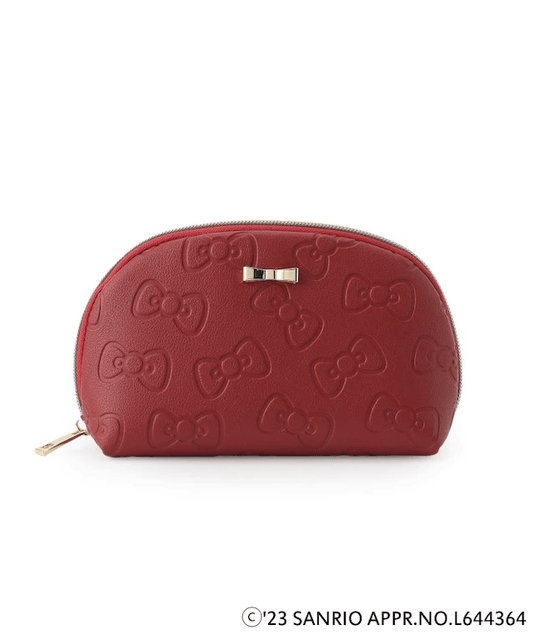 合皮素材(フェイクレザー)のアイテムには、リボンモチーフのエンボス加工が施されており、表面の立体感がアクセントになっています。