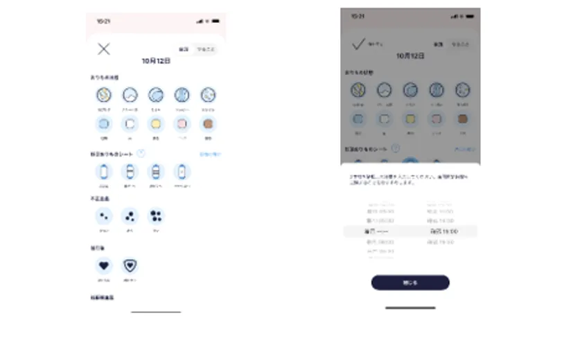 (3) 『ソフィ 妊活タイミング※3をチェックできるおりものシート』の使用状況や、毎日の体調を細かく記録することが可能です。