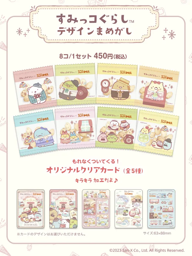 すみっコぐらしデザインまめがし 8コ1セット+ランダムカード1種:450円