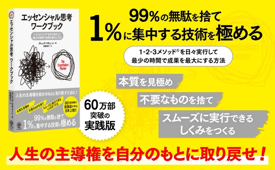 本書は、この『エッセンシャル思考』を実際の生活に落とし込み、実践するための一冊です。