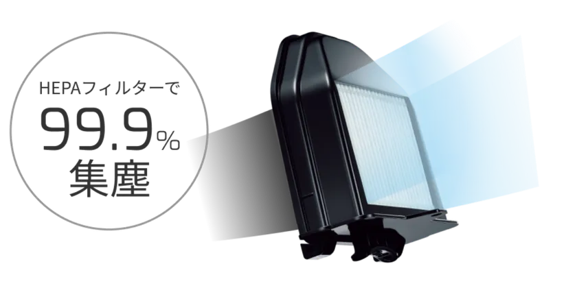 マイクロHEPAフィルターを搭載し0.3μmの超微細粉塵を99.9%以上キャッチして、清潔で安全な空気だけを排出します。