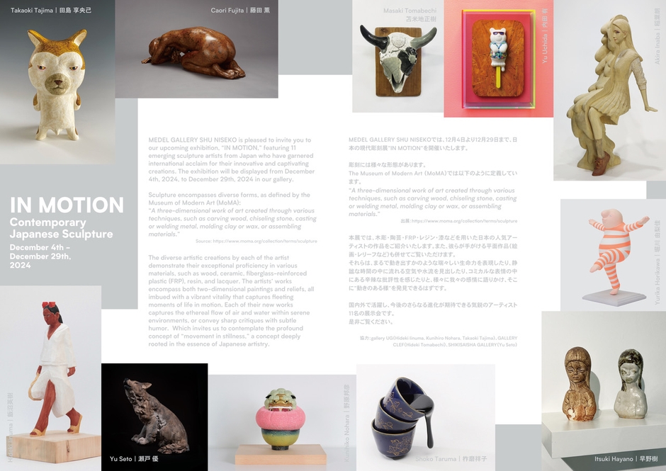 MEDEL GALLER Y SHU NISEKOでは、2024年12月4日〜12月29日まで彫刻作品のグループ展"IN MOTION"-Contemporary Japanese Sculpture-を開催します