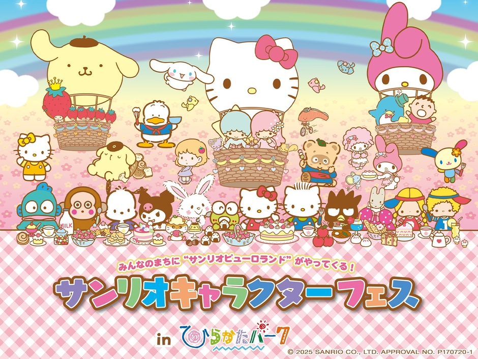 ひらかたパーク(大阪府枚方市枚方公園町1-1)で、2025年9月13日(土)~2026年1月12日(月・祝)に開催する「サンリオキャラクターフェス in ひらかたパーク」の詳細が決定しましたのでお知らせします。サンリオの人気キャラクターと会える「キャラクターグリーティングランド」をはじめ、縁日ゲームに挑戦して景品がもらえる「ピューロ縁日」やフォトスポットの設置などを実施します。また、本イベント限定のオリジナルグッズの販売にも注目です。
