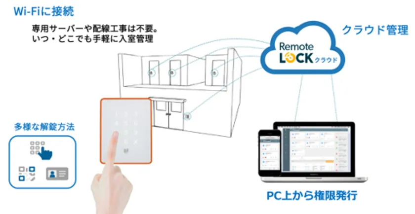 RemoteLOCKは、株式会社構造計画研究所が提供するビジネス向けのスマートロック製品および入退室管理システムです。クラウドシステムで予約客ごとに異なる有効期限つき解錠コードを管理・発行することができます。