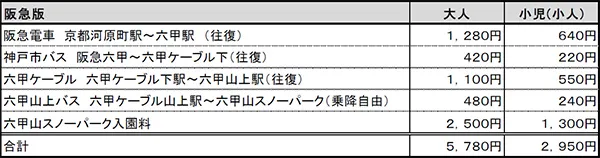 阪急版:阪急全駅(神戸高速線を除く。)から六甲駅までの往復乗車及び下記の共通区間