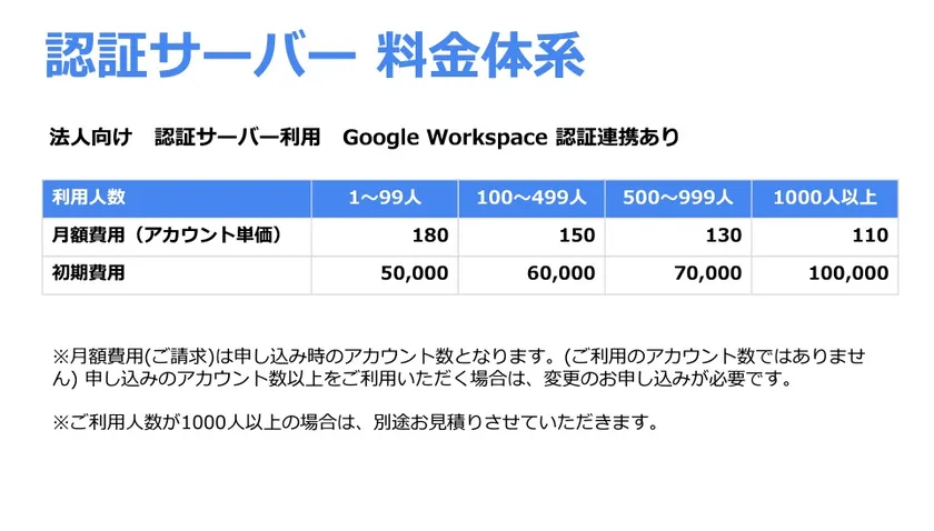 ※法人向け認証サーバー利用、Google Workspace 認証連携あり