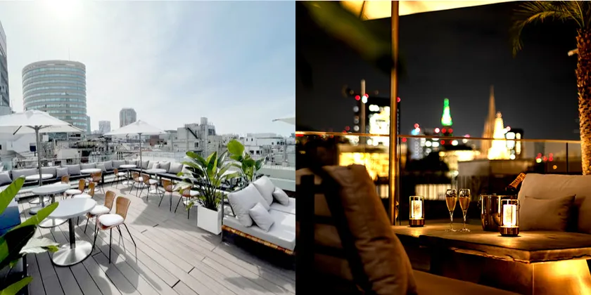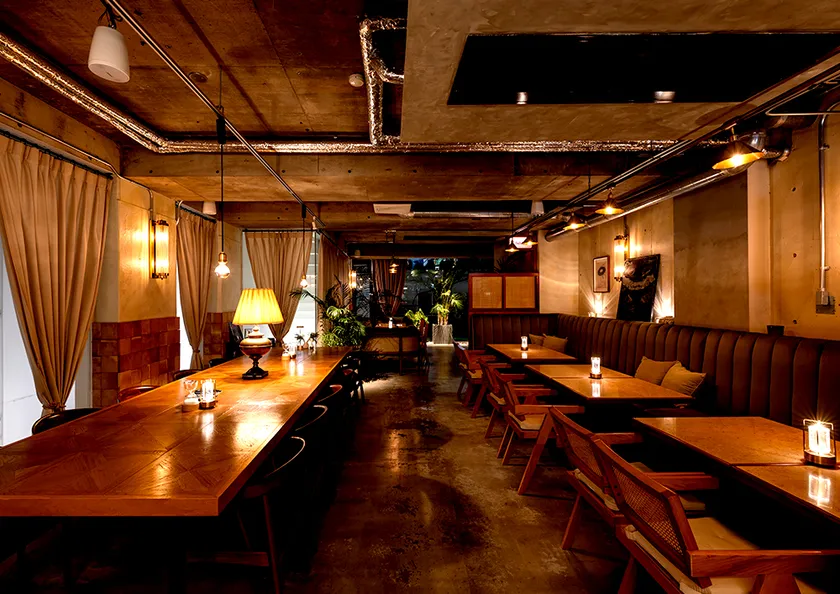 店内は、すべてオーダーメイドの家具で揃え、上品ながらもフォーマル過ぎない寛ぎの空間。表参道を一望するテラス席は、青空の下でのランチタイム、夕暮れ時の癒しの時間、ディナーはワイン片手に夜景を臨む…。そんな様々な過ごし方ができるのが魅力です。表参道駅から徒歩2分の場所にありながら、まるで海外のリゾートホテルのような心地よい開放感をお楽しみください。