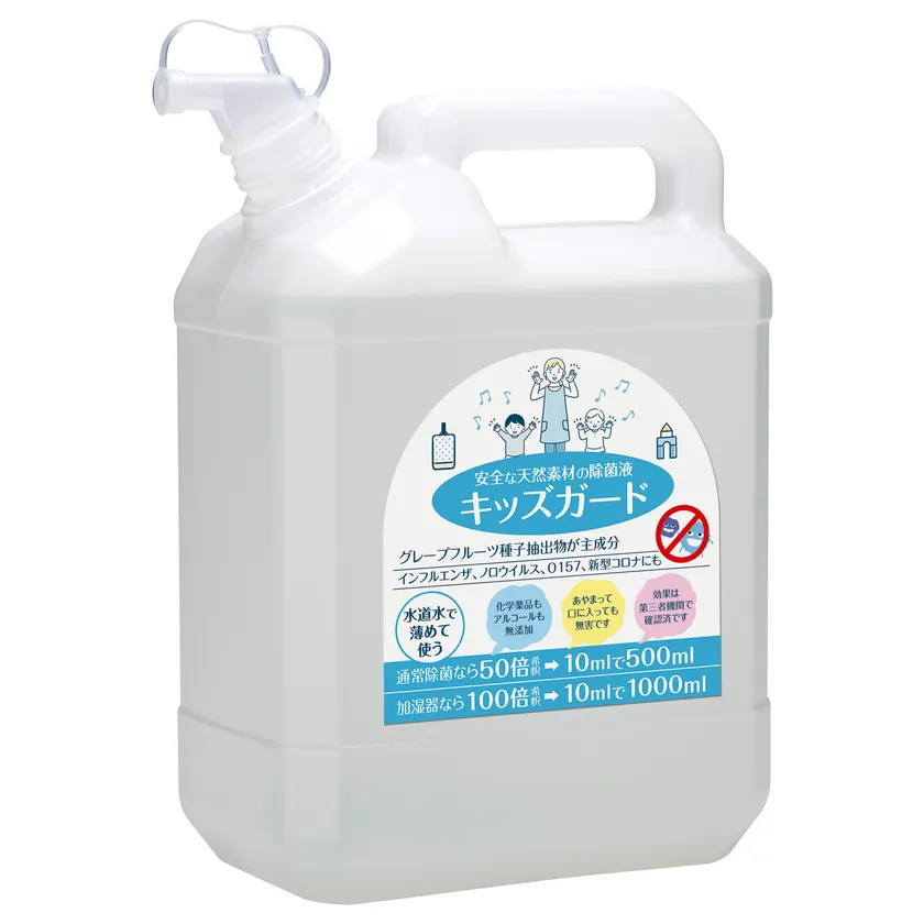 幼稚園、保育所、認定こども園は本当に安全?抵抗力の弱い幼児が集まる場所だからこそ、安全性が高い天然素材の除菌液を開発しました。キッズガードは食品添加物(天然素材)の除菌液です。インフルエンザウイルス、ノロウイルス、O157、新型コロナウイルスオミクロン株、MRSA黄色ブドウ球菌の不活化が第三者機関で証明されています。