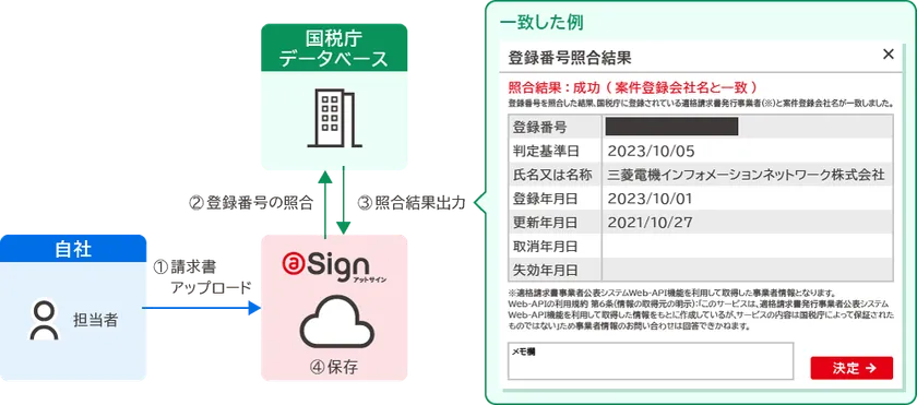 電子取引サービス@Sign 「インボイス登録番号照合」新機能のお知らせ ~容易に電子帳簿保存法の要件を守ることでき 業務効率化と負荷軽減に寄与~