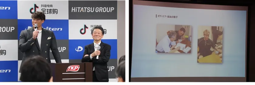 日辰、ファイテン、抖音電商全球購 (Douyin EC Global)の3社が登壇し、各社の代表からそれぞれの視点にて本事業の展望等を発表しました。また、特別ゲストとして阪神タイガース等で活躍した元プロ野球選手の糸井 嘉男氏をお招きし、現役時代から続くファイテンとの貴重な思い出や自身の経験などについてトークセッションを行いました。