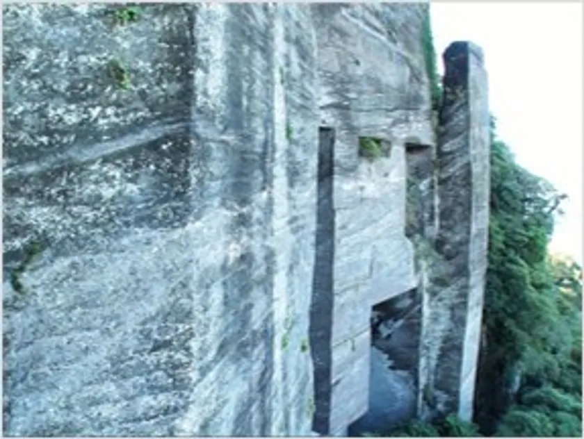 江戸時代から盛んに採石が行われた鋸山には大小様々な「石切場跡」が点在しています。垂直に切り出された約100mの絶壁、通称「ラピュタの壁」を横から眺めた景色は、圧巻のスケールです。