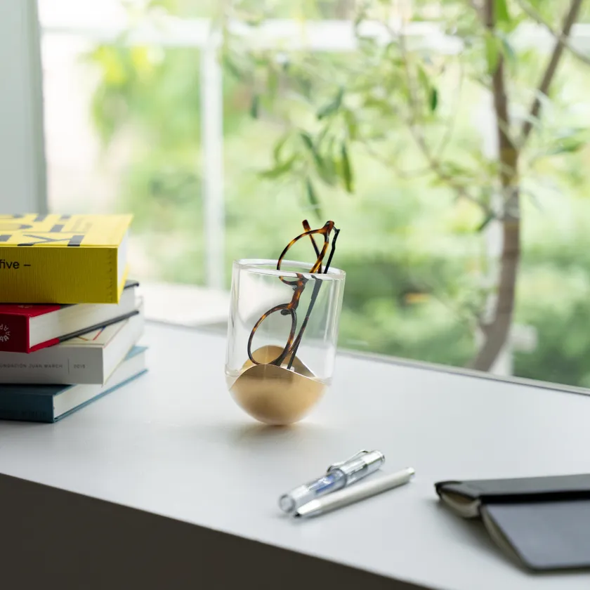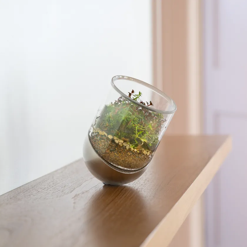 SESEKIは、暮らしにささやかな変化をつくる入れ物です。鋳鉄の重みを活かすことで起き上がりこぼしのような動きをするため、入れる物や入れ方によって傾きが変わり、変化を楽しめます。また、花瓶として使用する場合、植物の成長によっても傾きが変化し、新たな表情を生み出します。