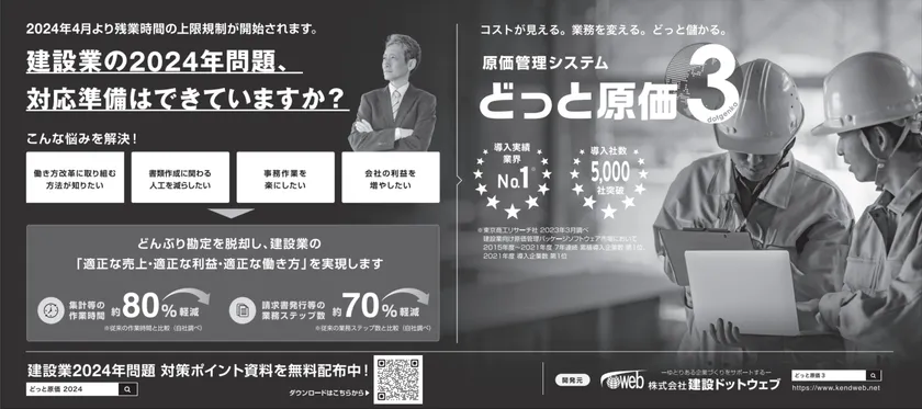 建設業導入実績No.1※1の原価管理システム「どっと原価シリーズ」を開発・販売する株式会社建設ドットウェブ(本社:石川県金沢市、代表取締役:三國 浩明、以下「当社」)は、2023年11月6日(月)に日本経済新聞へ広告を掲載いたしました。日本経済新聞での当社広告の展開は初の試みとなります。