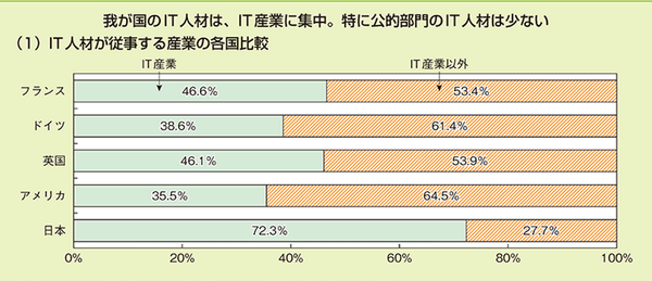 (内閣府「令和2年度 年次経済財政報告」IT人材が従事する産業より)