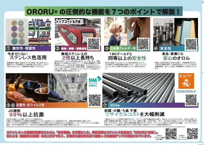 オロル株式会社(本社:鳥取県鳥取市、代表取締役:木下 淳之)は、世界初の技術で色調の均一化に成功した、ORORU処理(R)のうち、ORORUIIコーティング処理ステンレス製品で抗菌製品技術評議会(SIAA)による、抗菌性能に関するSIAA認証を取得しました。