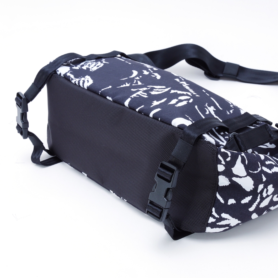 今年のCHROMEのヒット作『Newspaper Messenger Bag』にAlexanderLeeChang定番NYANCAMOがあしらわれ、底面にはスケートボードや脱いだジャケットなどいろいろなものを収納できるCHROMEらしい拡張システムが施されている。
