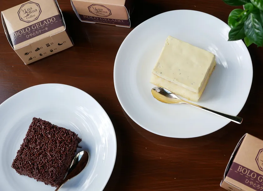 コロナが流行りカフェの経営も厳しくなってきたとき、冷凍スイーツのジャンルでなにかできる事はないかと考えていました。代表の自分はブラジルと日本のハーフでして、ブラジルでよく食べられるBolo geladoに注目しました。このケーキは日本のケーキとは全く違う食感があり、作る工程で冷凍をするのでお客様の口に入るまで味が衰えることなく提供できるので絶好の冷凍スイーツになると思い、日本人の口にも合うように調整し開発しました。