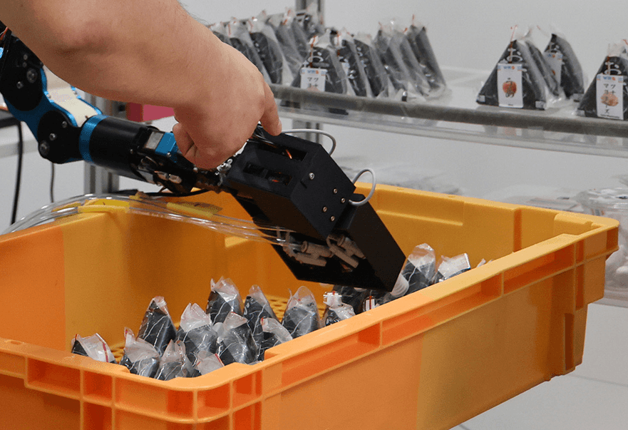 どのプロジェクトも、研究室の課題として学生と一緒に取り組みます。中でも、商品陳列ロボットの開発は、学生主体で10年ほど続けています。目的はコンビニの店内など限られたスペースで、棚に商品を並べる作業を自動化すること。こうした取り組みと関連して、本学とつながりのあるイオンモールナゴヤドーム前店で実験させていただき、現場の課題とニーズを捉えて開発に生かしています。例えば、店舗では棚のスペースが商品サイズに合わせて設計されているため、その狭い空間でロボットが作業するのは容易ではありません。それなら棚が自動的に前へせり出せば、ロボットが奥まで手を伸ばさなくても商品を並べることができるはず。環境を整えることでロボットの作業を単純化でき、実装に近づくわけです。