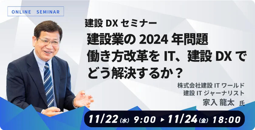家入 龍太氏が講演 建設業向けDXセミナー「建設業の2024年問題、働き方改革をIT、建設DXでどう解決するか?」開催のお知らせ