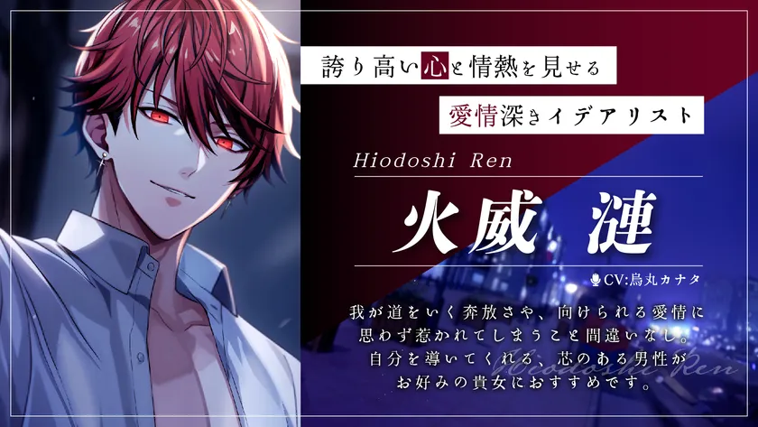 極道の家系で厳しく育てられ、兄貴肌で誰にでも頼られる存在だけれど貴女にだけは特別嫉妬深い火威漣。