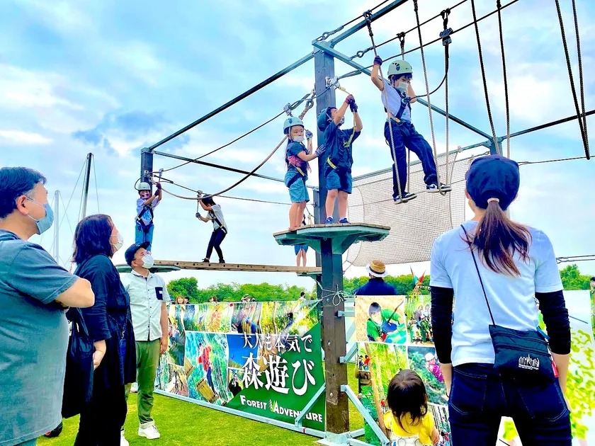 ミニ四駆のコーナーでは、GRスープラのレースカーを組み立てて、専用コースを走らせることができます。「フォレストアドベンチャー」では、地上約2mのフィールドアスレチックで空中散歩や空中遊泳が楽しめます。また、ロボットに搭乗して操る楽しさを体験できる「ロボットライド」もあります。ほかにも「パラシュートスライダー」や「タイヤボウリング」、紀州材を使った“しおりづくり”のワークショップなど、家族で楽しめるイベントが盛りだくさんです。
