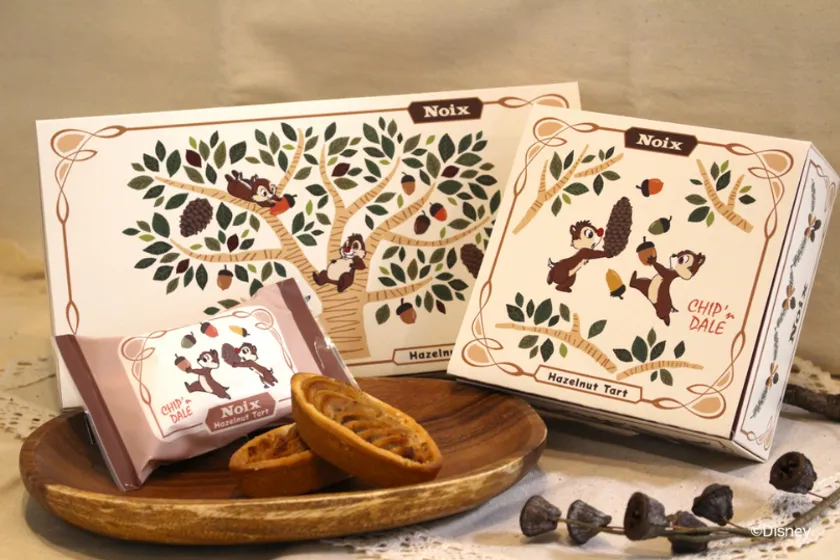 “木の実のスイーツ専門店「Noix」”と、“木の実が大好きな「チップアンドデール」”の世界観がマッチして、今回の「Noix Chip‘n Dale Collection」シリーズが誕生しました。