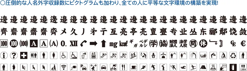 〇圧倒的な人名外字収録数にピクトグラムも加わり、全ての人に平等な文字環境の構築を実現