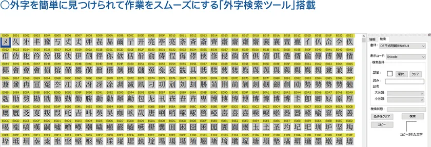 〇外字を簡単に見つけられて作業をスムーズにする「外字検索ツール」搭載
