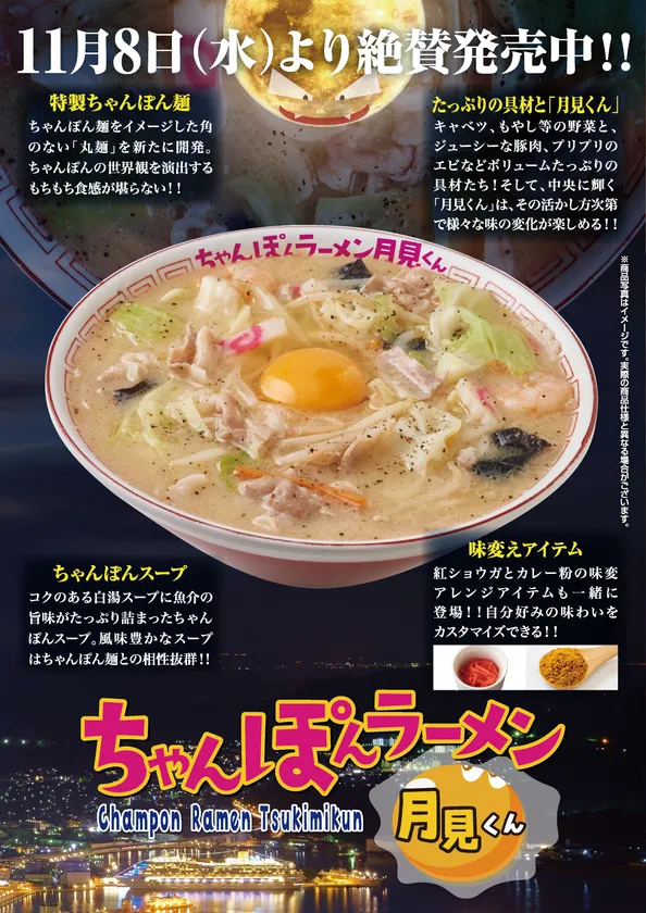 ちゃんぽん×ラーメン×「月見くん」 『ちゃんぽんラーメン月見くん』 2023年11月8日(水)から期間限定販売!