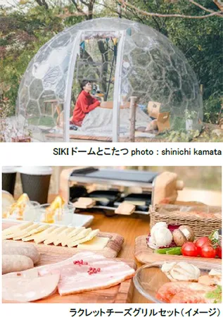 「SIKIドーム」とは、まるで屋外にいるかのような気分を味わえる360度透明のドームです。当プランでは、六甲山の冬の景色を眺めながらこたつの中であたたかくお過ごしいただけます。また、食材をグリルし、あたためたチーズをかけて食べる「ラクレットチーズグリルセット」(当プラン限定メニュー)も併せてお楽しみいただけます。