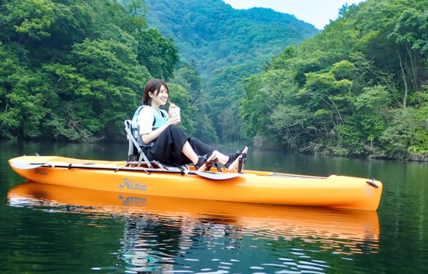 また、カヤックにはドリンクホルダーがありますので、水上で飲食を楽しめます。kiond内の「LibraryCafe」や、ヴィソン内で購入されたテイクアウトメニューをカヤックの上で楽しむなんてこともできます。