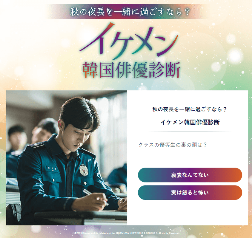 「秋の夜長を一緒に過ごすなら?イケメン韓国俳優診断」概要