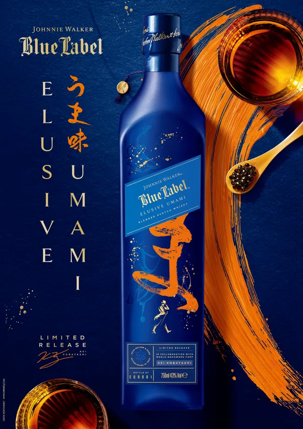 このとらえどころのない個性を表現した「ジョニーウォーカー ブルーラベル ウマミ」 は、ブラッドオレンジや赤いベリー、燻製肉、塩と胡椒の香り、長く甘い果実のフィニッシュを伴う、甘さと香ばしさの美しいバランスが味わいの特徴であり、このブレンドに使用されるのは、ディアジオ社が保有する樽のうち、25,000樽に1樽という割合になります。「うま味」には、私たちの感覚を刺激し、贅沢な味わい、複雑さ、奥深さを明らかにする神秘的な性質があります。「ジョニーウォーカー ブルーラベル ウマミ」の魅力的な味わいをボトルに凝縮し、繊細なコクを持つ極上な味わいに舌鼓を打つことができます。