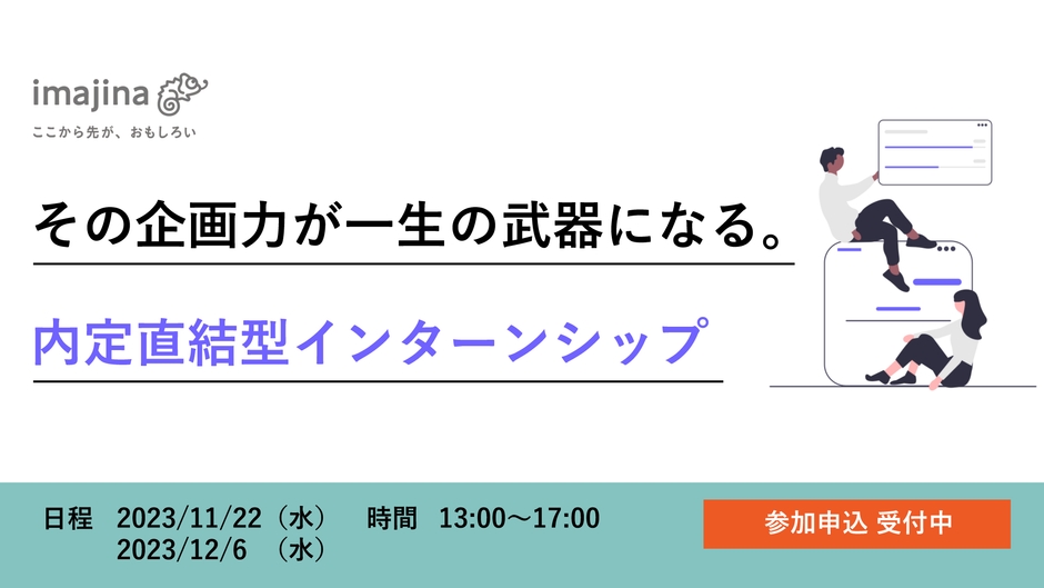 そこで、この度株式会社イマジナでは、経営コンサルタントの業務体験を通して学生が働くイメージをより具体的に掴める1dayインターンシップを開催いたします。