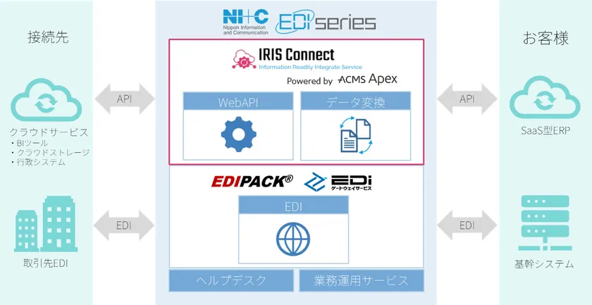 NI+C EDIシリーズはWebAPIやEDIを用いたシームレスなデータ連携を実現します。
