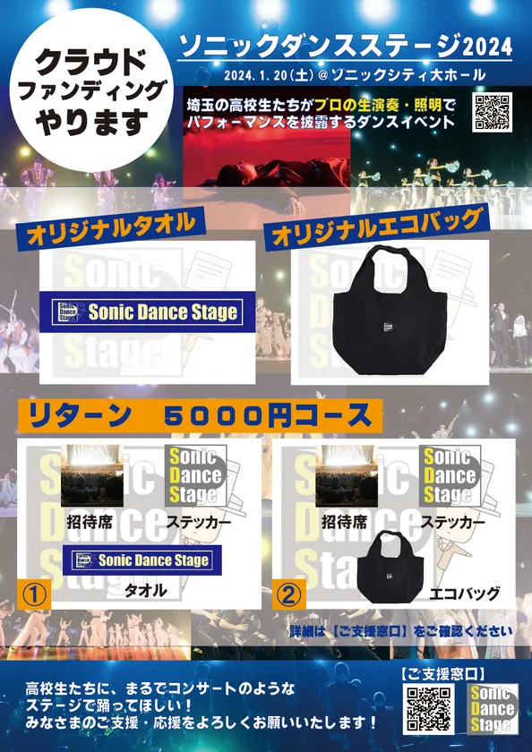 ソニックシティでは、今後もダンスイベントを継続して開催し若者を応援する場を提供していきたいと考え、クラウドファンディングを実施しています。