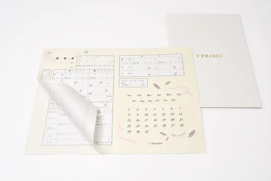 節目となる大切な瞬間を保存できるよう婚姻届は複写式です。1枚目は提出用、2枚目は記念としてお持ちください。記念日にリングを置き、おふたりだけのオリジナル写真を撮ることもできます。