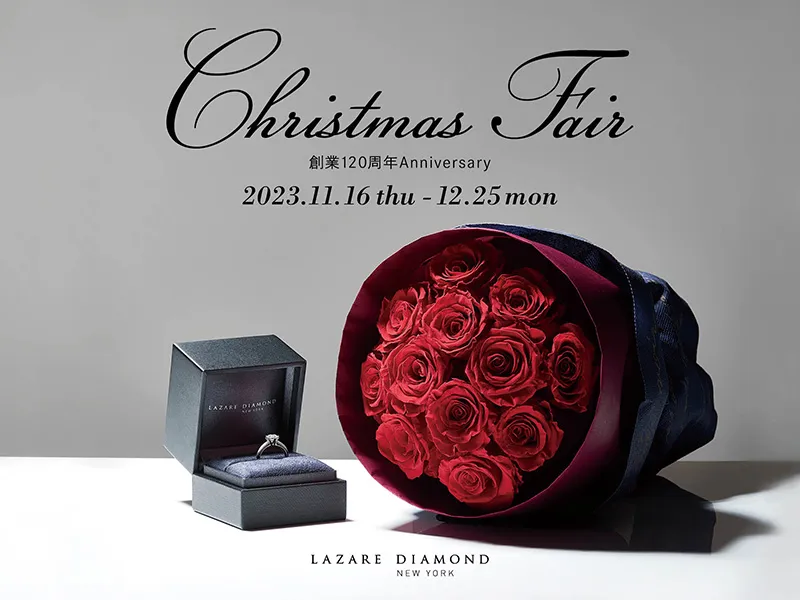 NYの美意識に磨かれた七色の輝きを放つ「ラザール ダイヤモンド」のエンゲージリング、卓越したクラフトマンシップが光るマリッジリングを、クリスマスに向けた特別な時期に豊富なラインアップでご覧いただけます。また、店頭のクリスマスデコレーションがお客様をお迎えいたします。この機会に是非ご来店をお待ちしております。