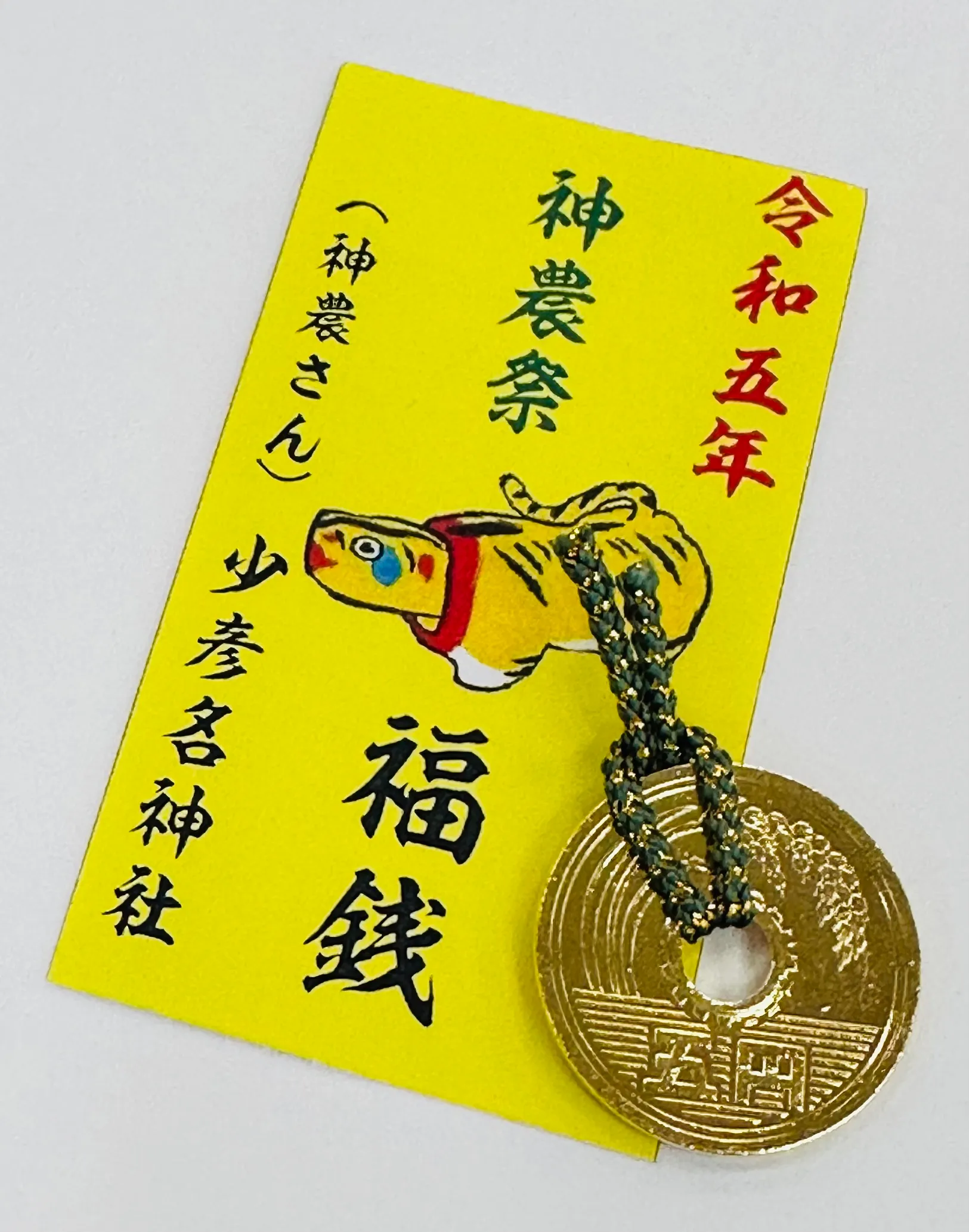 少彦名神社の神農祭限定福銭をプレゼントします。
