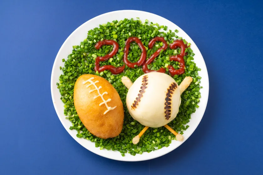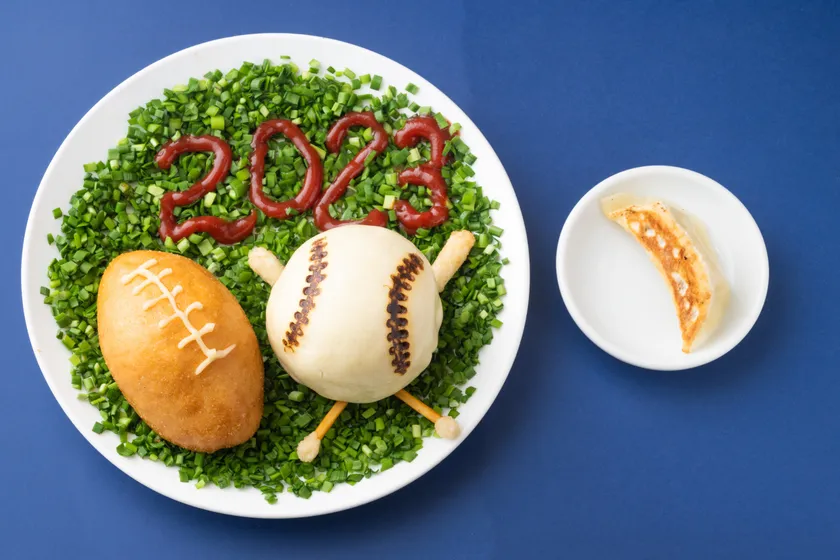 餃子は当店自慢の焼き餃子の餡を使って、野球とラグビーそれぞれのボールの形に。今年の夏の甲子園優勝校・慶應義塾高校が掲げて有名になった“エンジョイ・ベースボール”のように、餃子作りにも自由な発想を取り入れて、見ても食べても楽しめる一品にこだわりました。野球ボールの方は蒸し餃子、ラグビーボールの方は揚げ餃子になっていて、2種類の餃子を一度に楽しむことができます。