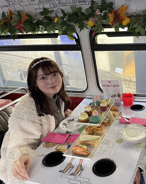 楽しみにしていたのは憧れのロンドン。ブライトンからは電車で1時間くらいでした。真っ赤な2階建てのロンドンバスに乗って市内を巡りながら、車内でアフタヌーンティーを楽しめるツアーに参加しました。夕方に出発する便だったのですが、ライトアップされたロンドンの街並みがとてもロマンティックで素敵でした。