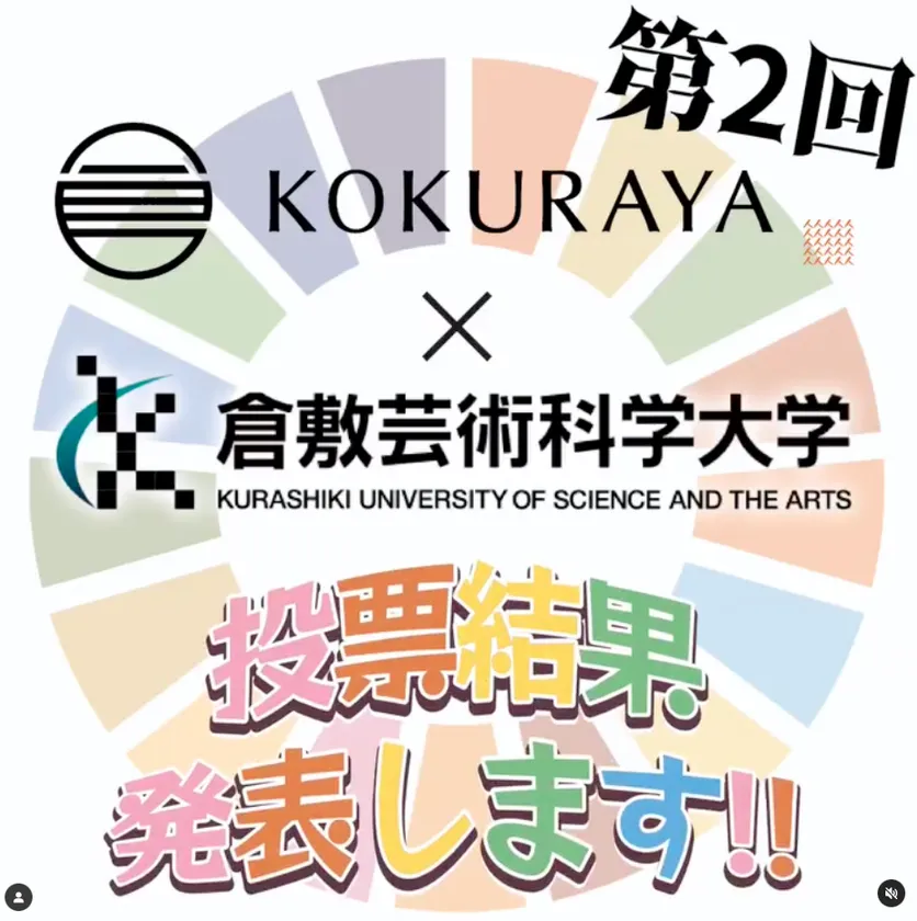 第2回小倉屋×倉敷芸術科学大学コラボ企画では、SDGsをテーマにしたデザインを「プロジェクト実習」の講義を通じて倉敷芸術科学大学の学生さん達に企画提案していただき、20234年7月10日(月)~7月24日(月)の2週間、小倉屋のInstagram公式アカウント(@kokuraya_unifor)にて「いいね」による投票を行い、グランプリ作品他を決定しました。