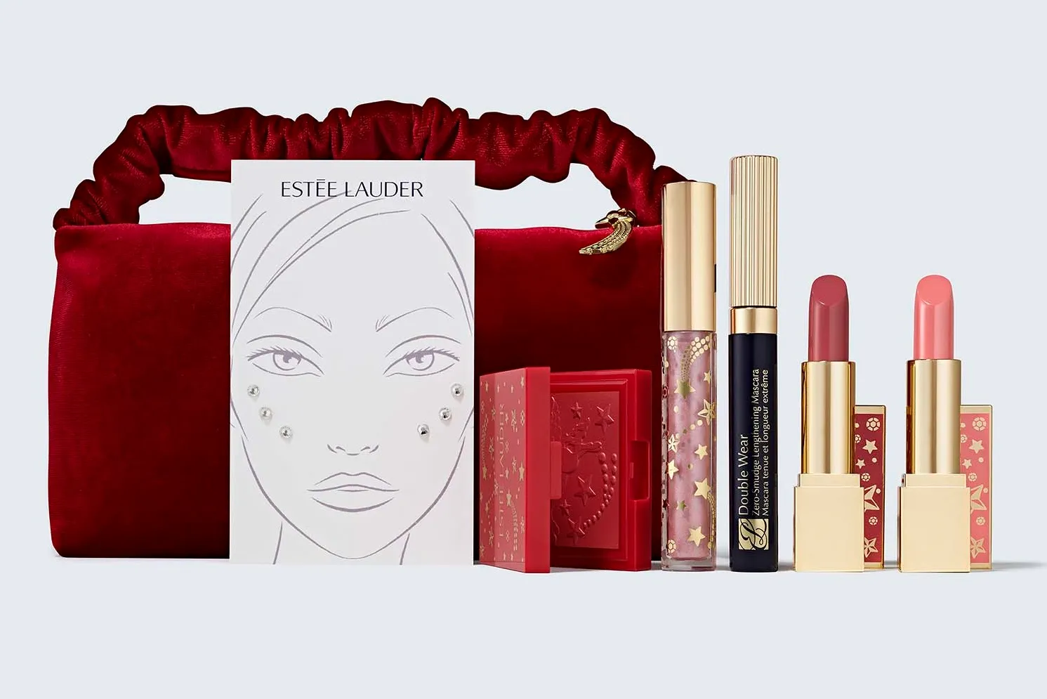 華やかなパーティールックに仕上げるリップ、ハイライター、そして星座をかたどったようなチークを、ホリデーシーズンにぴったりのコスメティックバッグにセットしました。